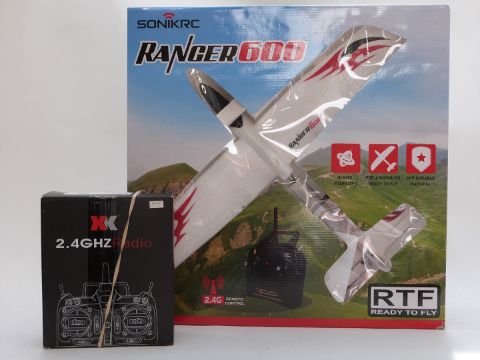 Sonik RC Ranger 600 RTF model aeroplane complete with transmitter, charger etc, together with an XK x 6 2.4ghz radio transmitter, both in original boxes