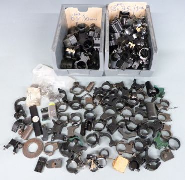A large collection of pairs of scope mounts of various sizes.