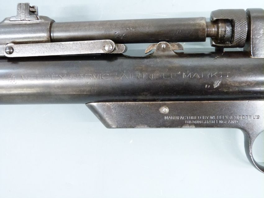 Webley Service Mk II .22 air rifle with chequered grip, interchangeable barrel, adjustable pop-up peep sights and adjustable alignment sights, NVSN.