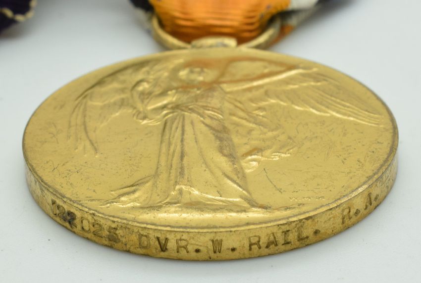 British Army WW1 medals comprising 1914-1918 War Medal and Victory Medal named to 122025 Driver W Rail, Royal Artillery