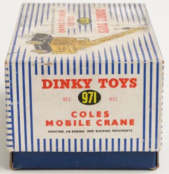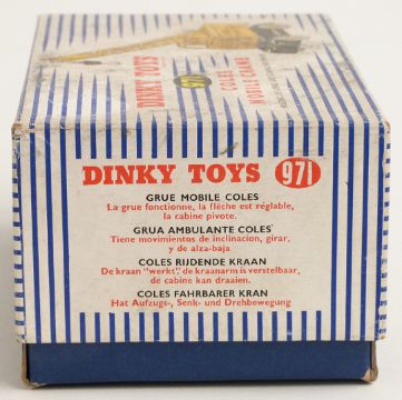 Dinky Toys Coles Mobile Crane with yellow body and hubs and black chassis, 971, in original box