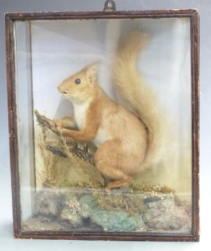 Victorian taxidermy study of a red squirrel in glazed case, W18 xD13 x H34