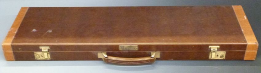Browning shotgun carry case with fitted wool lined interior, 80x23.5x7cm.