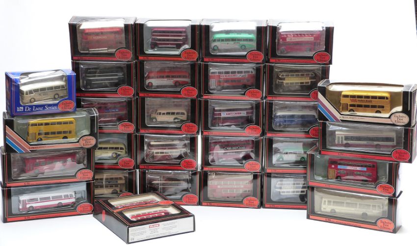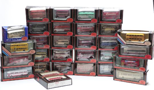 Thirty Exclusive First Editions (EFE) 1:76 scale diecast model buses and coaches, all in original display boxes.