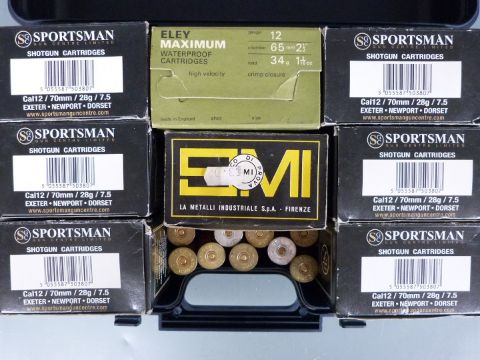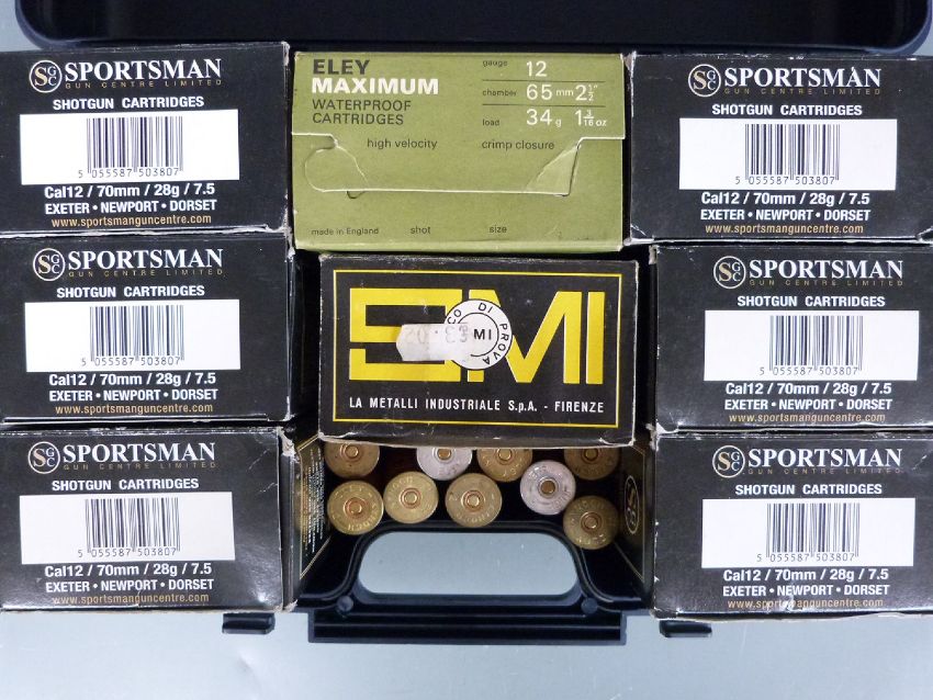 Two-hundred-and-eight 12 bore shotgun cartridges including Sportsman, Eley Maximum and SMI, most in original boxes together with a Beretta pistol case PLEASE NOTE THAT A VALID RELEVANT FIREARMS/SHOTGUN CERTIFICATE IS REQUIRED TO HANDLE/PURCHASE THIS ITEM.