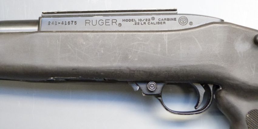 Ruger model 10/22 .22 semi-automatic carbine rifle with chequered pistol grip and forend, black A.B.S folding stock and 19 inch barrel, overall length 93cm, serial number 241-41675. PLEASE NOTE THAT A VALID RELEVANT FIREARMS/SHOTGUN CERTIFICATE IS REQUIRED TO HANDLE/PURCHASE THIS ITEM.