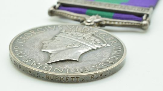 British Army General Service Medal with clasp for S.E. Asia 1945-46 named to 14736766 Gunner A S Hurkett, Royal Artillery