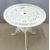 A decorative cast metal circular garden table and four chairs, diameter 80cm, height 70cm