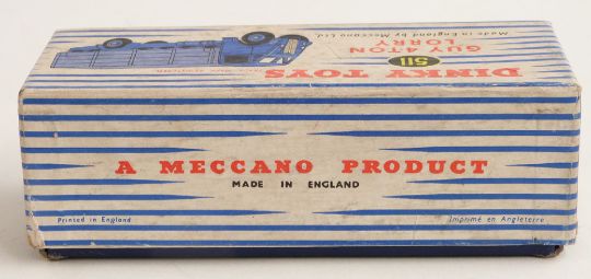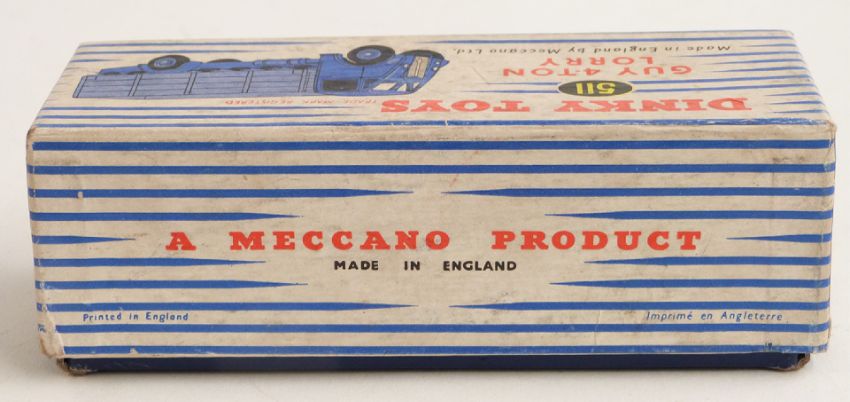 Dinky Toys diecast model Guy 4-Ton Lorry with dark blue body and chassis and light blue bed and hubs, 511, in original box.