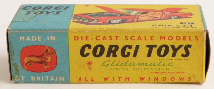 Corgi Toys diecast model Ghia L.6.4 with Chrysler Engine, metallic blue body, red interior and Corgi dog on the parcel shelf, 241, in original box.