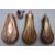 Three small copper and brass pistol or revolver powder flasks, two with embossed decoration and one reeded, largest 12cm long.
