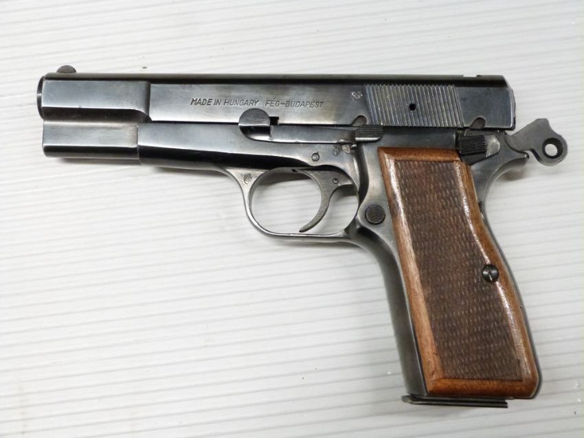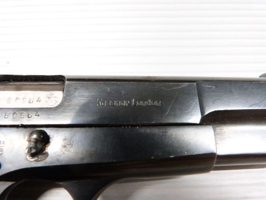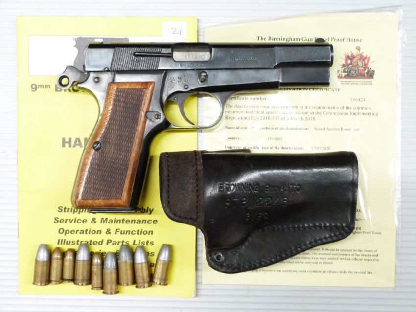 Browning 9mm Hi-Power pistol with wooden grips, original handbook and deactivation certificate dated 17/07/20