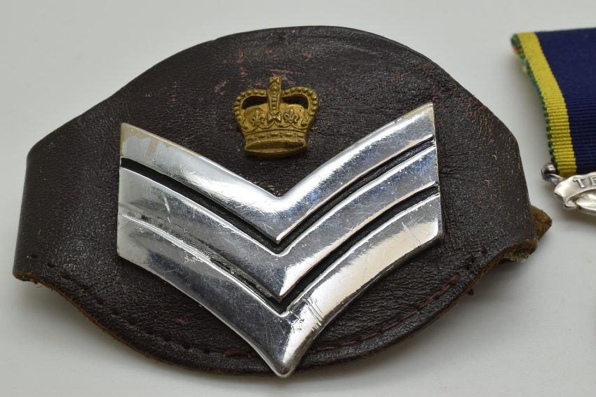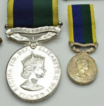 British Army Territorial Efficiency Medal named to 24381219 Staff Sergeant G Wood, Royal Wessex Yeomanry with miniature and wrist rank badge