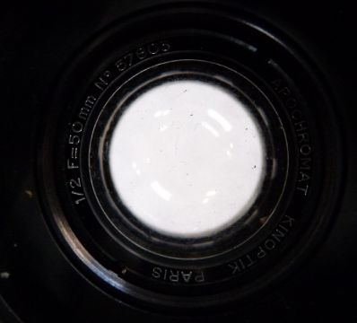Kinoptik Paris Apochromat f=50mm 1/2 lens serial number 57803, with front and rear covers