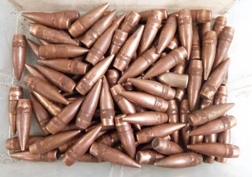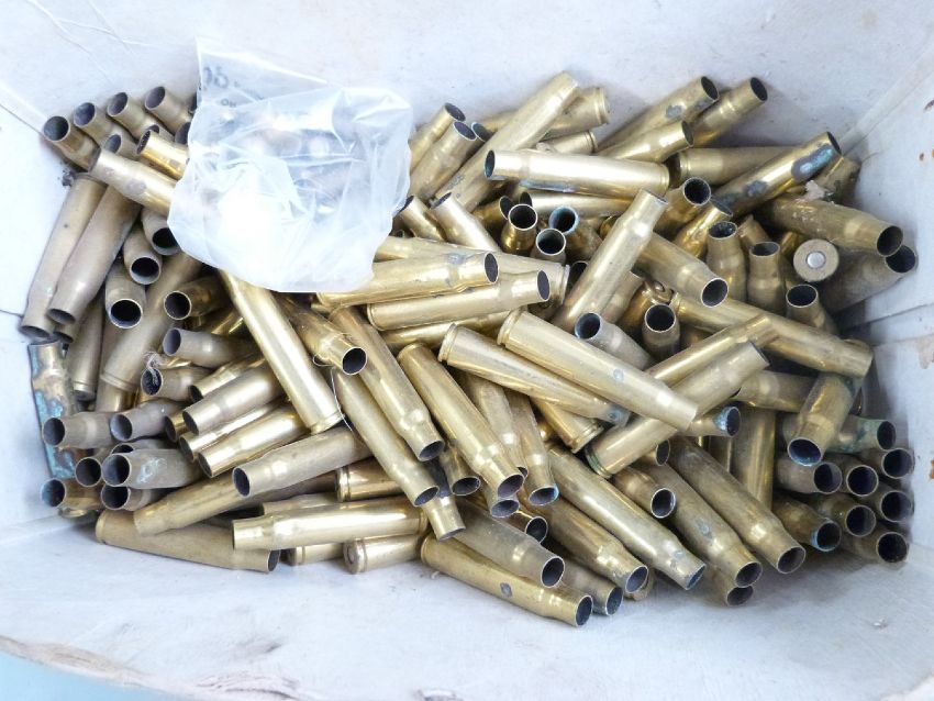 A large collection of .303, 7.62 and .30-06 empty brass cartridge cases.