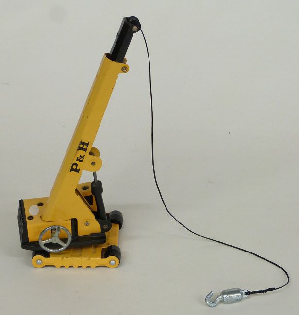 Six pressed steel and tinplate model vehicles comprising Tonka Hyraulic tipper truck, Marx Lumar Contractor excavator, Tonka crane, ladder fire engine and bulldozer and Sutcliffe Trojan Dumper.