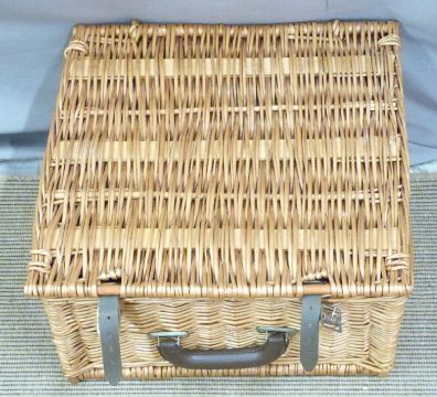 Four Fortnum and Mason wicker and birch hampers, box and picnic basket (no contents) and a Sherwood picnic hamper for two with contents, largest W58 x D40 x H38cm