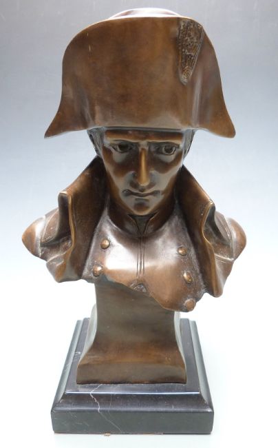 A modern bronze bust of Napoleon signed Le Comte, 35cm tall including plinth