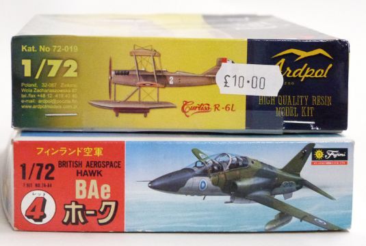 Sixteen Heller, FROG, Monogram and similar plastic model kits, including Lockheed F-94B Starfire, Spitfire, NC-1, Cams 37A, Mustang P-51B, all in original boxes.