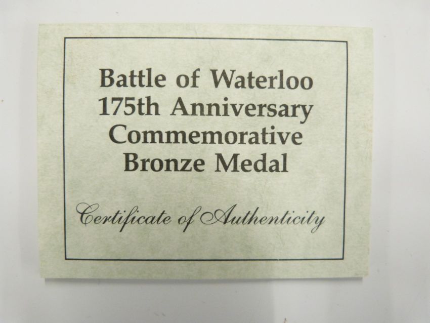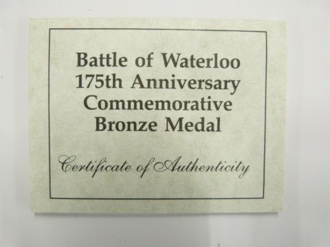 1990 Royal Mint Battle of Waterloo 175th Anniversary commemorative bronze medal, cased with certificate