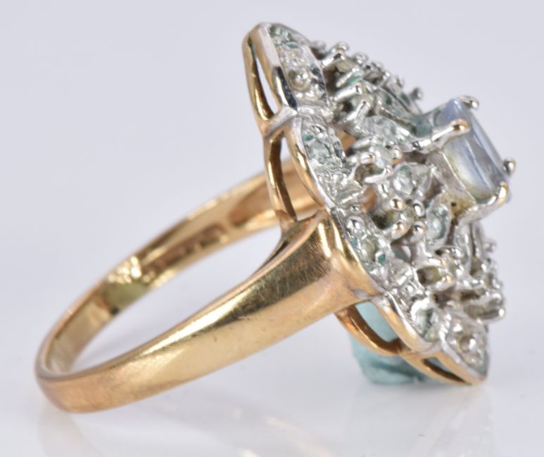 A 9ct gold ring set with an amethyst and diamonds, 4.2g, size O
