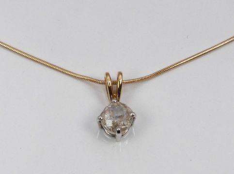 An 18ct gold pendant set with a diamond of approximately 0.45ct on a 9ct gold chain
