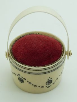 Three 19thC Indian Madras ware ivory pin cushions, two in the form of pails, largest diameter 4cm