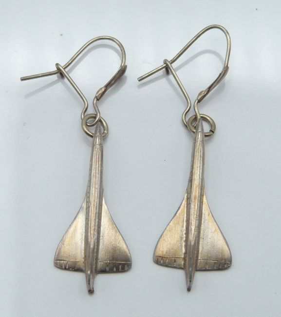 A white bangle in a foliate design (63g) and a pair of Concorde earrings