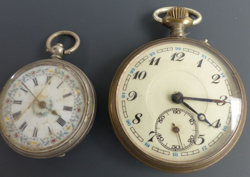 Five various pocket watches comprising Victorian hallmarked silver cased fusee lever example, small fob watch with 800 grade silver case, small gunmetal cased fob watch and two others