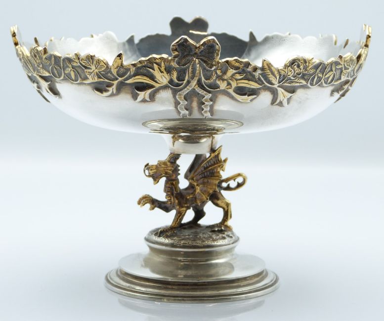 Garrard limited edition (108/200) 1981 Royal Wedding hallmarked silver commemorative pedestal bowl with gilt dragon support, London 1981, diameter 15.5cm, weight 388g