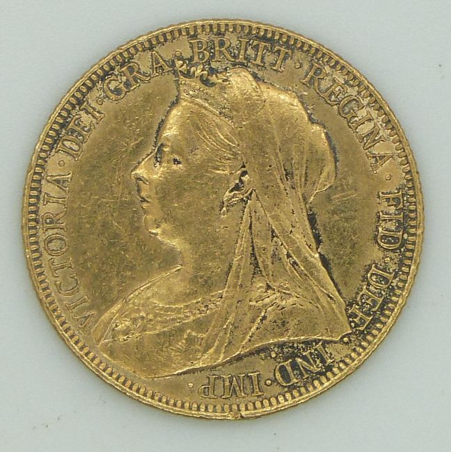 1901 Victoria veiled head gold full sovereign, Melbourne Mint
