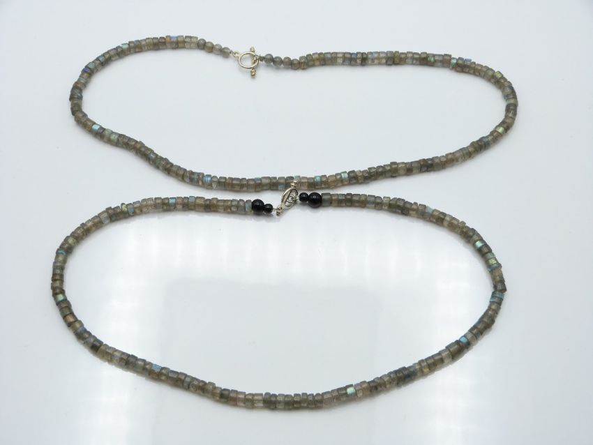 Two quartz necklaces and two labradorite necklaces