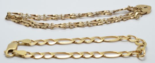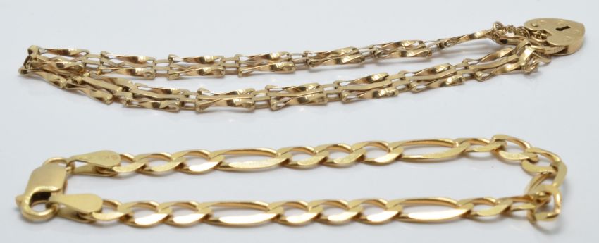 A 9ct gold gate bracelet and 9ct gold curb link bracelet