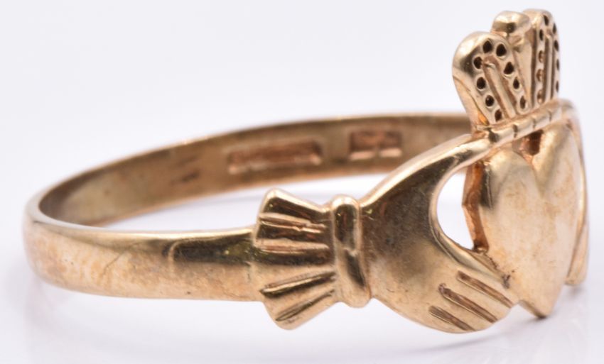 A 9ct gold Claddagh ring, size X/Y, 3.50g