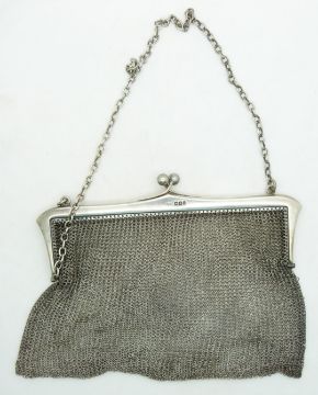 A hallmarked silver mesh purse / bag, London 1917, maker British Automatic Mesh Company, 12 x 16cm