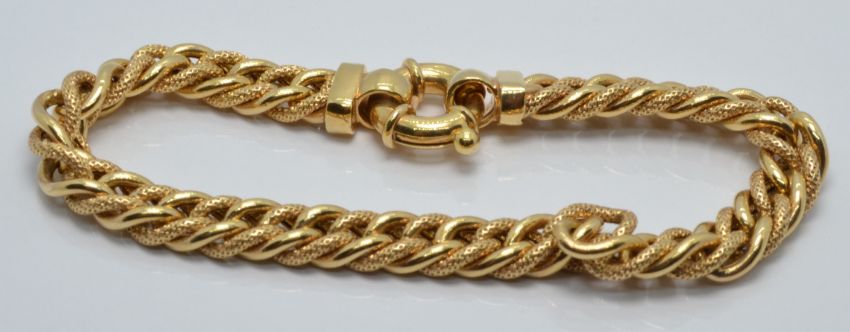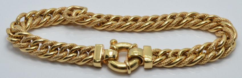 A 9ct gold bracelet made up of alternating textured and polished links, 14.2g