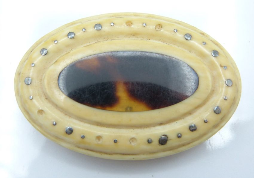 Sections of an ivory bracelet set with silver studs and tortoiseshell