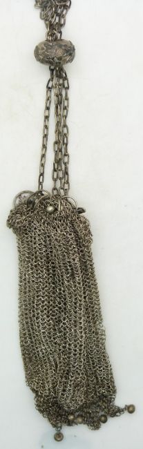 A late 19th/20thC Chinese silver mesh purse / bag, L32cm