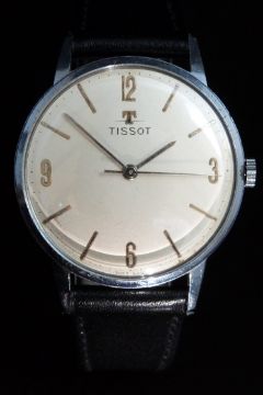 Tissot gentleman's wristwatch ref. 41000-42000-1 with silver hands, numerals, hour markers and dial, stainless steel case and 17 jewel calibre 781 movement signed 'CHs Tissot & Fils', on black leather strap, case diameter 34mm, serial number 4937604