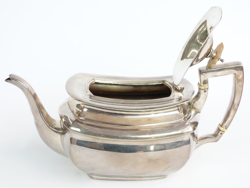 WITHDRAWN     Georgian style hallmarked silver teapot, Birmingham maker's marks rubbed, but likely William Devenport, length 28cm, weight 650g