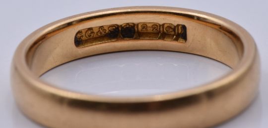 A 22ct gold wedding band/ ring, 5.2g, size N