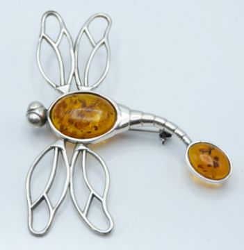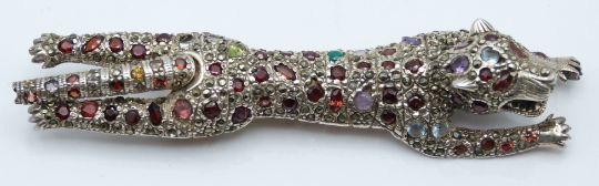 Brooches including Victorian agate, silver, Siam silver, silver dragonfly set with pressed amber, leopard etc