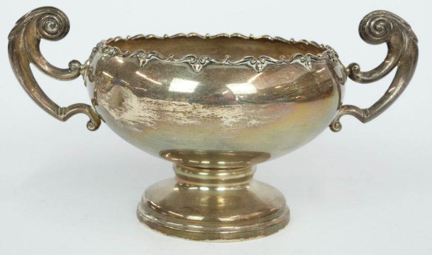 Goldsmiths & Silversmiths Co Ltd George V hallmarked silver twin handled pedestal presentation trophy bowl or cup, London 1918, width 24.5cm, weight 341g
