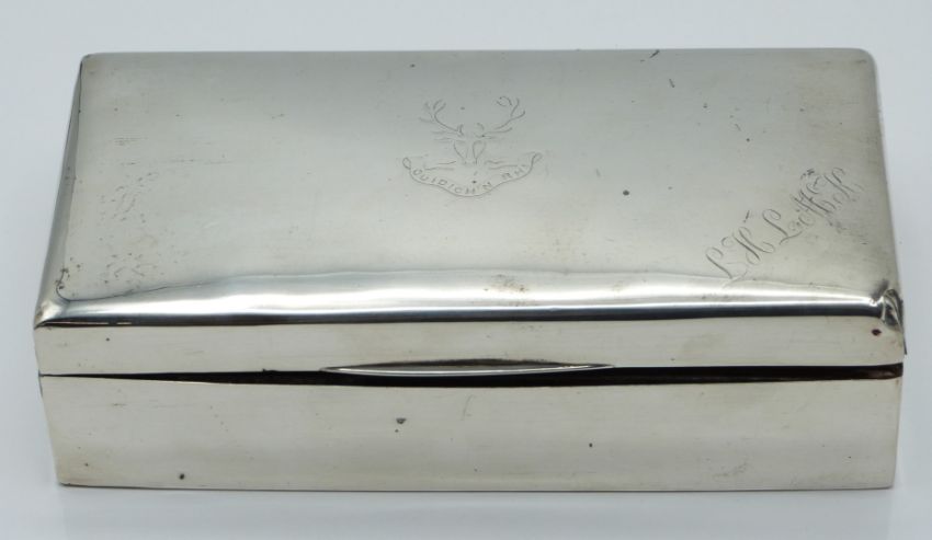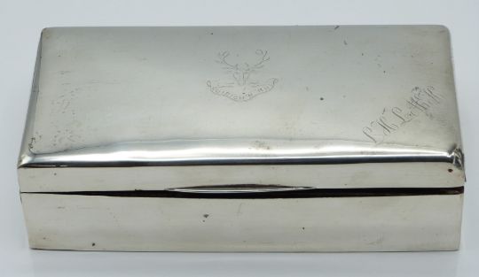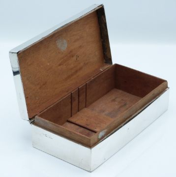 George V hallmarked silver cigarette box, Chester 1923 maker's mark rubbed, width 18cm