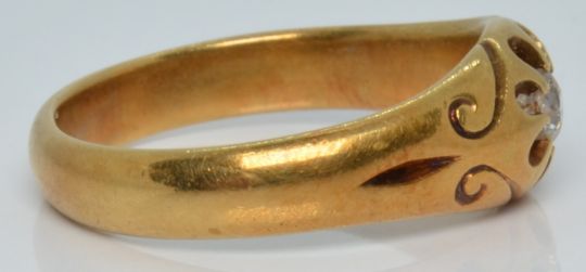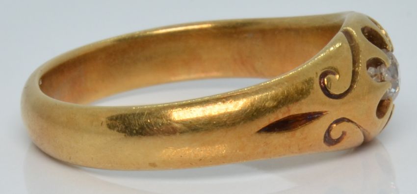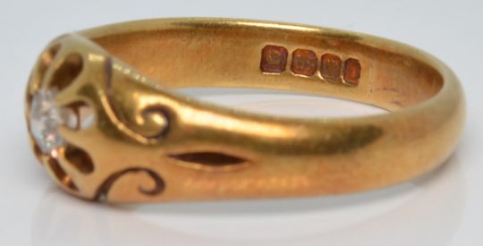 Edwardian 18ct gold ring set with an old cut diamond of approximately 0.2ct, 7.2g, size R/S