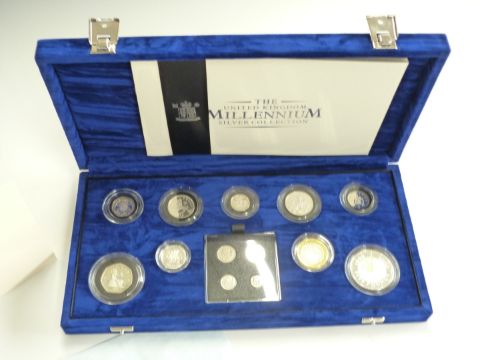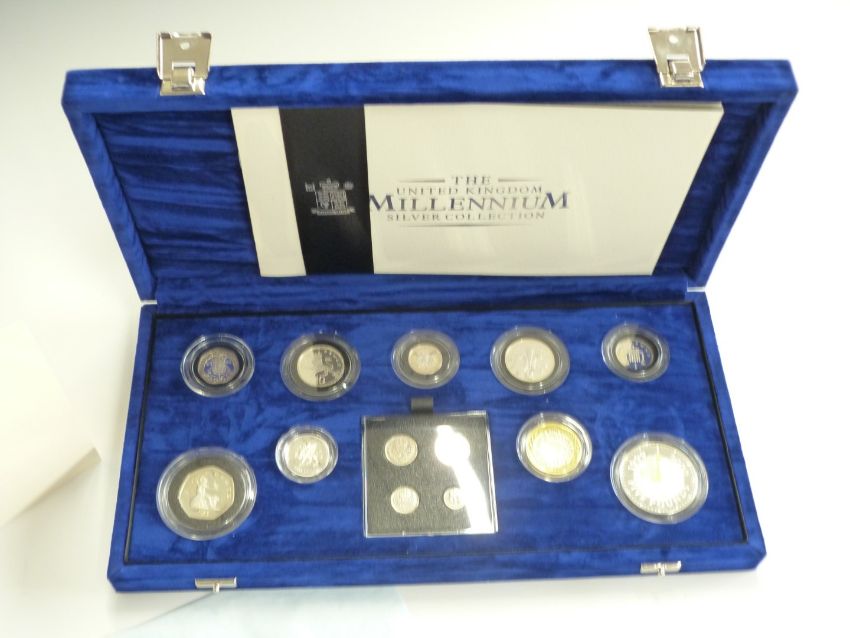 Royal Mint UK Millennium Silver Collection coin set, includes Maundy examples, cased with certificates