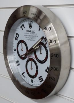 Rolex Oyster Perpetual Daytona shop display or dealer's advertising wall clock with white dial and tachymetre bezel, overall diameter 34cm