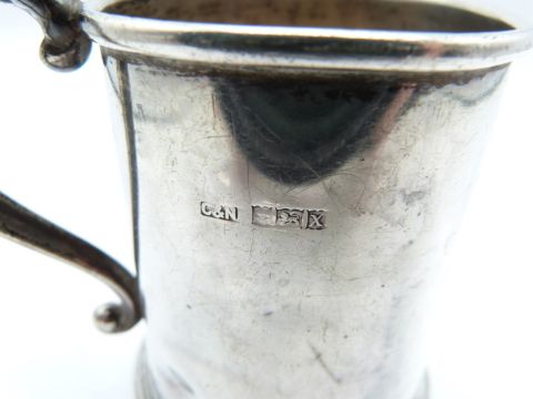 Modern hallmarked silver christening tankard of plain tapering form, Birmingham 1972 maker Crisford & Norris Ltd, height 8.5cm, weight 100g