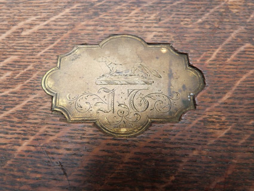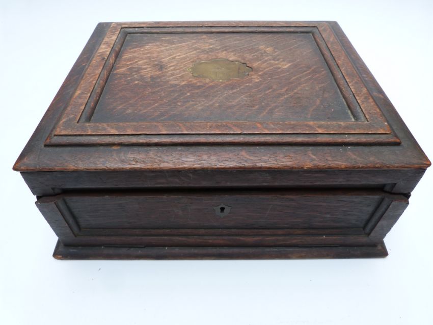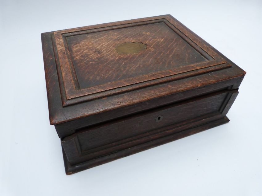 Victorian brass bound bible in oak box with dedication to inside of clasp 'James Tagg, 1862', 27 x 33cm