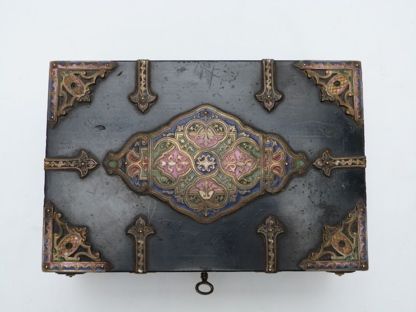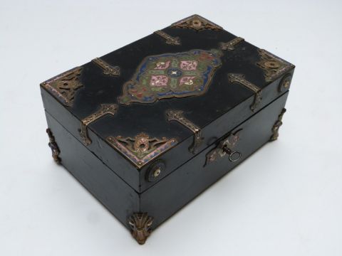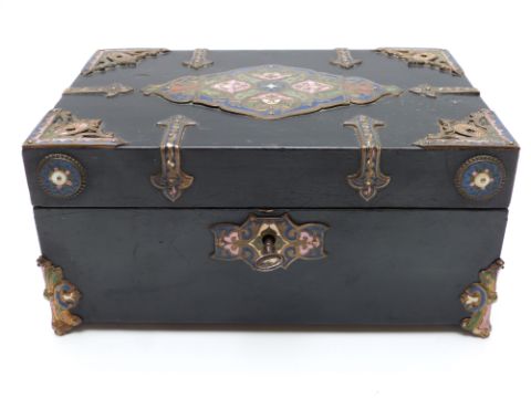 Victorian brass bound ebonised box raised on moulded feet W20 x D14 x H9.5cm